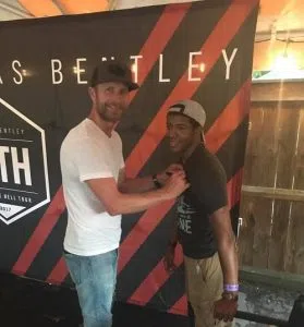 During a recent stop on his What the Hell World Tour at the Veterans United Amphitheater in Virginia Beach, Dierks Bentley took time to meet with U.S Army Sgt. Legrand Strickland and his wife, Carrie. The weekend event was hosted by Veterans United Home Loans and the Gary Sinise Foundation’s R.I.S.E. program, which will provide Sgt. Strickland with a mortgage-free, specially adapted smart homes customized specifically to meet his needs.
